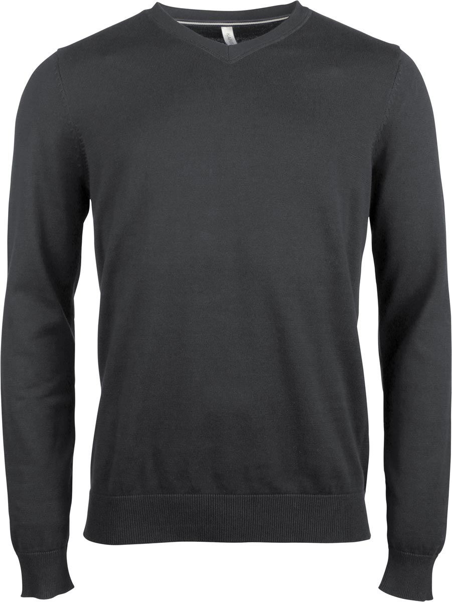 Figurbetonter Schnitt, Rippstrickkragen, V-Ausschnitt mit Nackenband, Schulterpasse, kontrastfarbiger Aufnäher an den Ellbogen