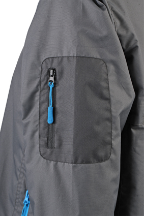 2 seitliche Taschen mit Reißverschluss, Ärmeltasche mit Reißverschluss