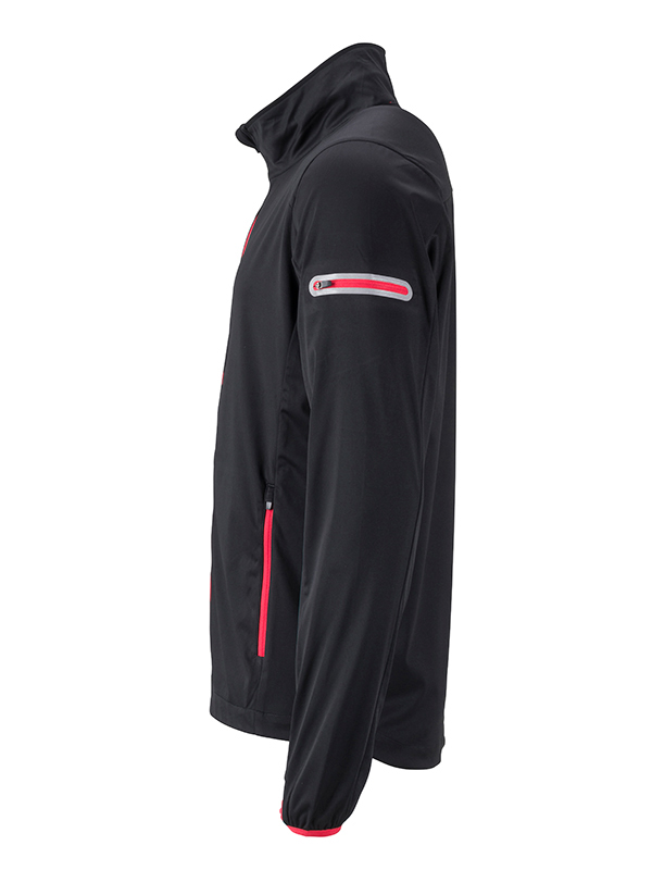 Durchgehend hinterlegter, reflektierender Frontreißverschluss mit Kinnschutz