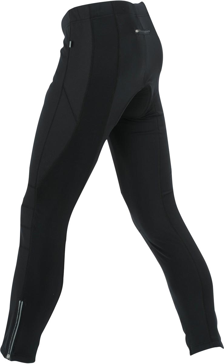 reflective piping, front: windproof and breathable softshell fabric, back: pleasant elastic fabric with Lycra®, fast-drying and moisture-adjusting, ergonomically designed cushion, treated antimicrobially with Coolmax® Silver, leg with non-slip rubber band, flat seams, small zipped pocket at the back, elastic waistband with cord, leg with zip and reflective piping