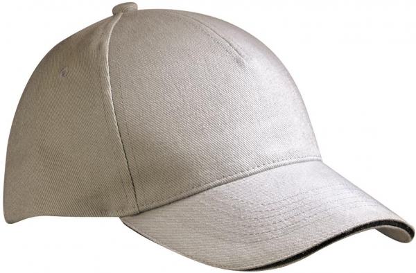 with contrasting sandwich, Velcro® fastener, 4 embroidered ventilation holes, 6 stitching lines on the peak, laminated front panel, padded satin sweat band